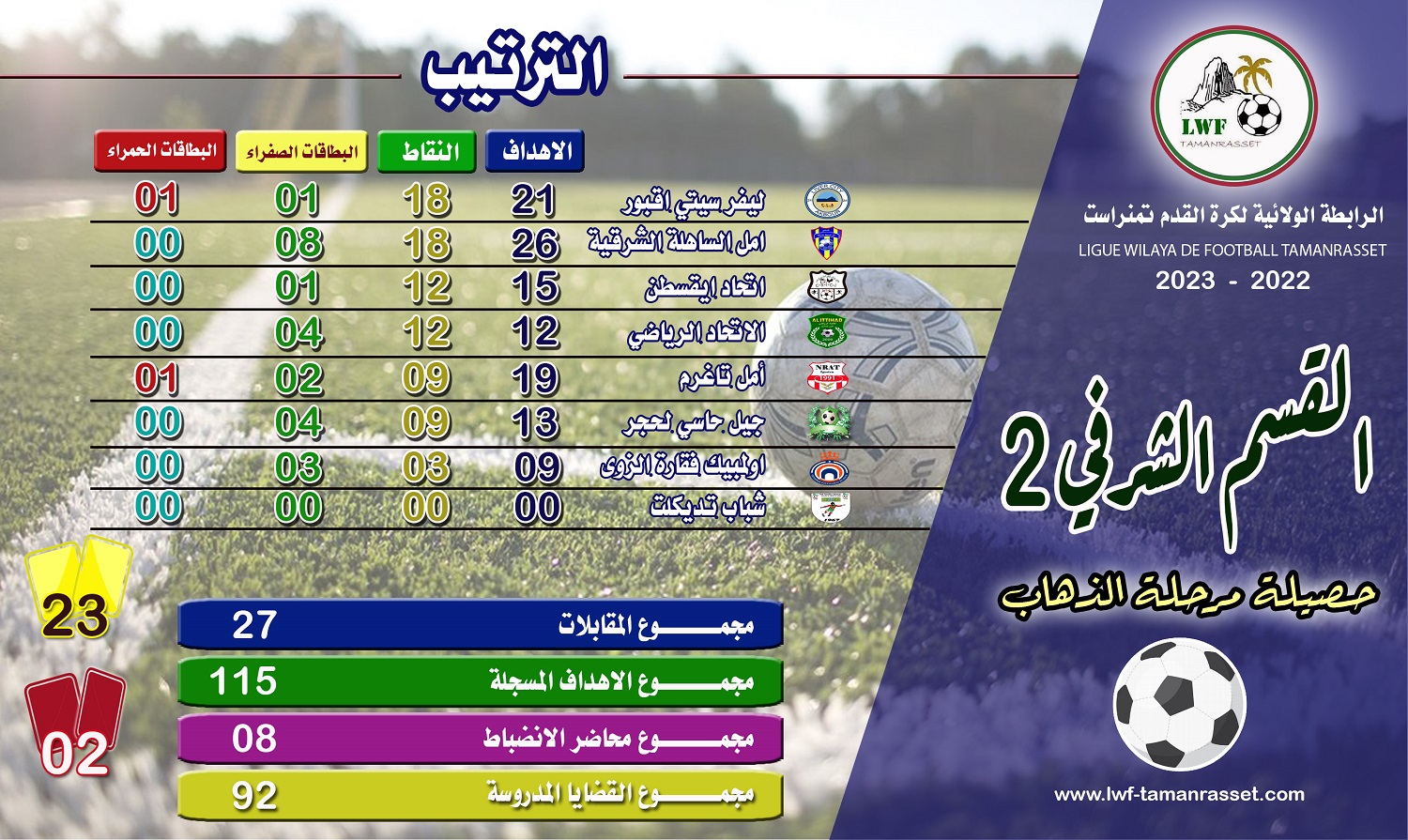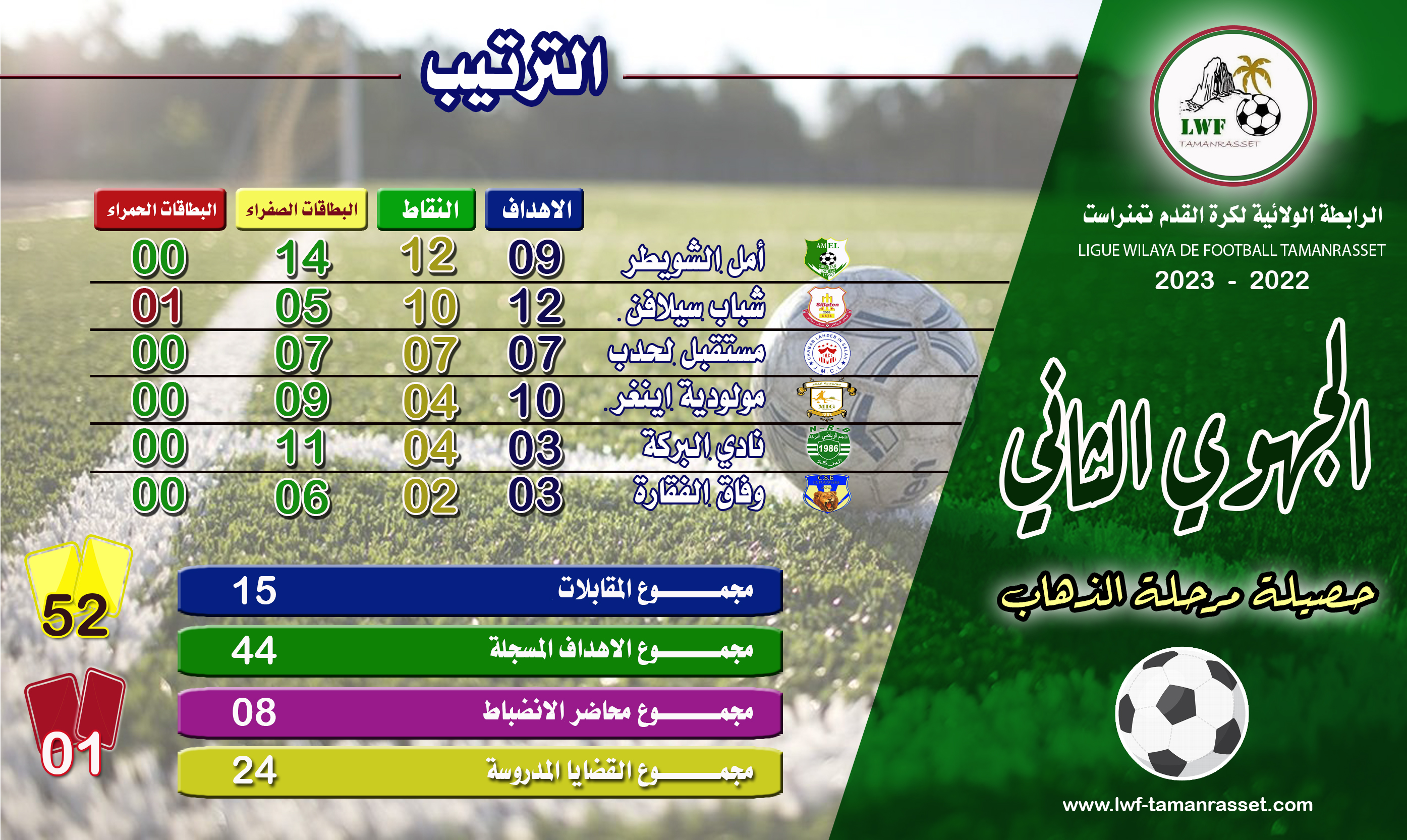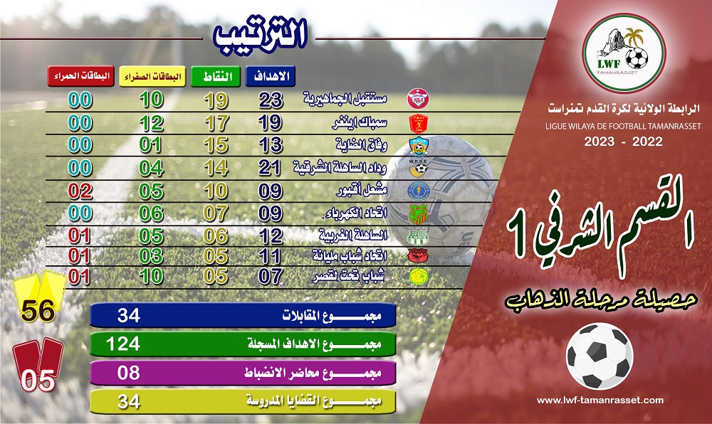حصيلة مرحلة الذهاب للموسم الرياضي 2022 - 2023