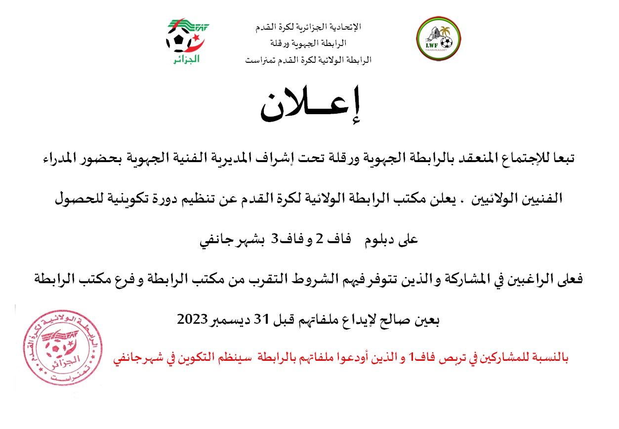 | تربص المدربين فاف1 و فاف2 و فاف3 |