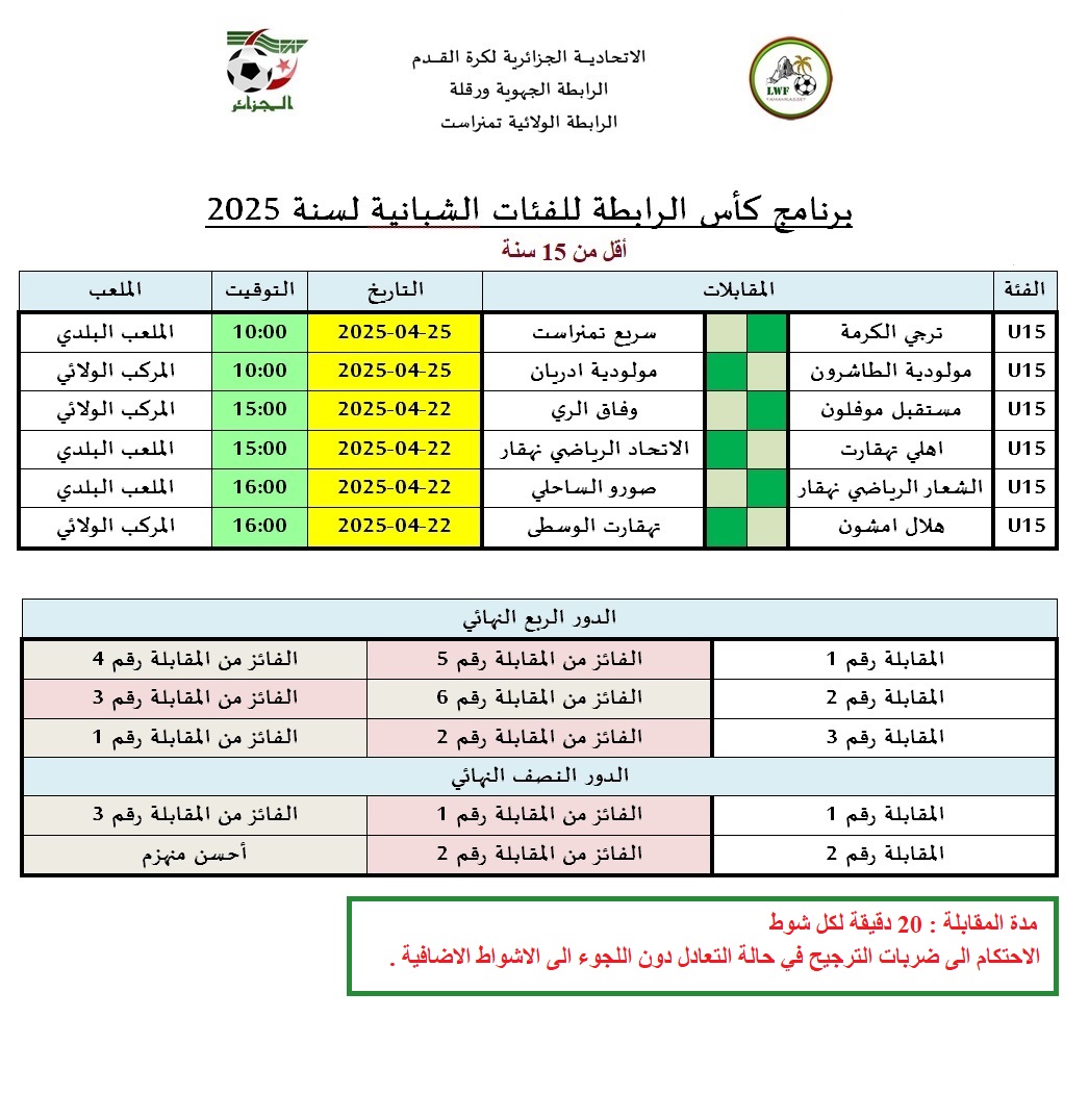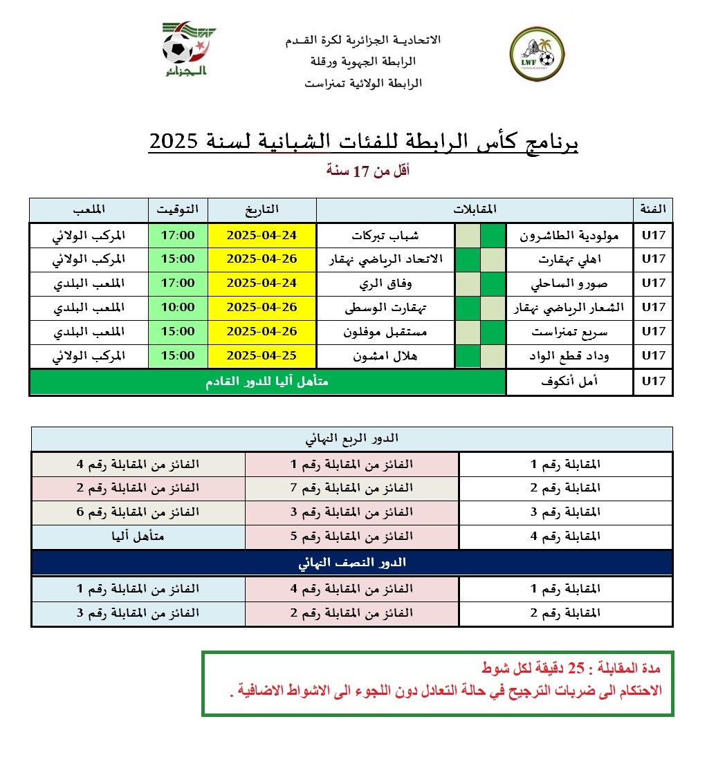 برنامج كأس الرابطة للفئات الشبانية للموسم 2024 - 2025
